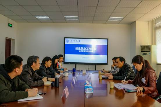 温朋科长为与会人员详细讲解了2019年本科生招生计划数、招生计划类别、招生宣传等工作,并就学院2019年招生工作中的相关问题与大家进行了交流讨论。彭黎明科长对学院就业指导工作表示了肯定,希望学院能够基于就业指导工作方案,为员工做好就业引导,扩展员工发展空间。
