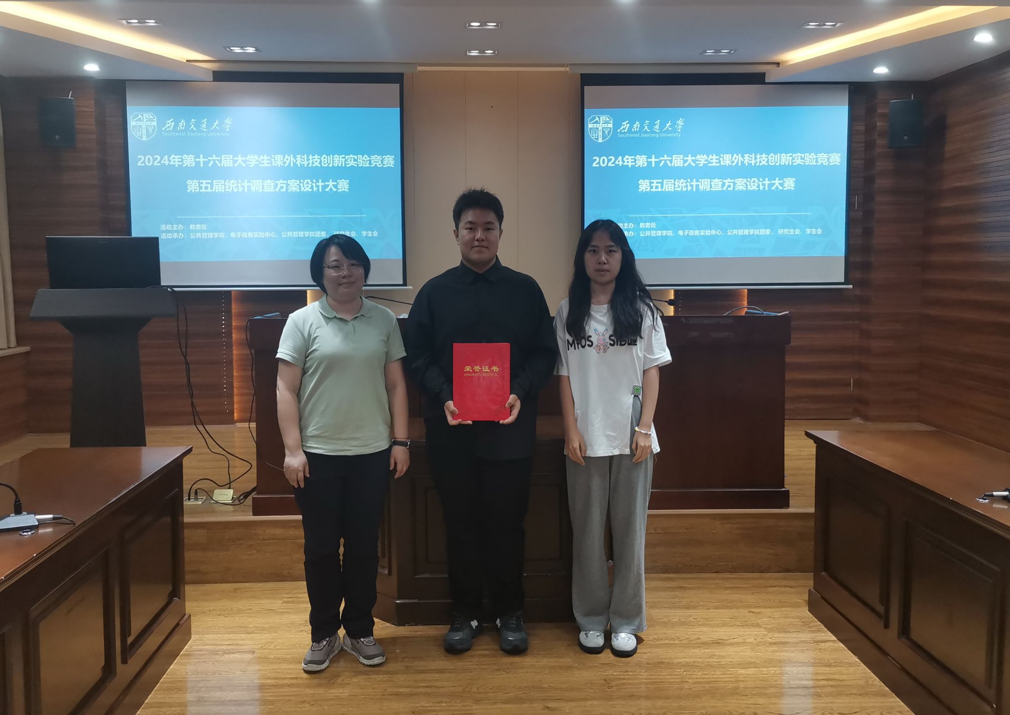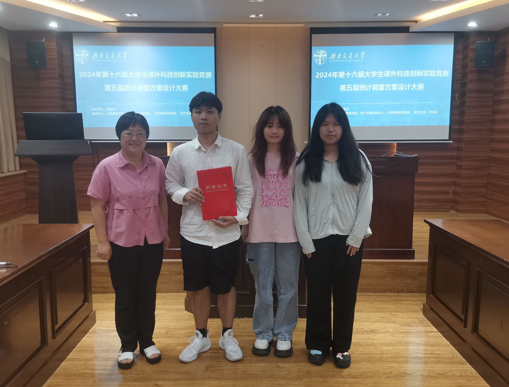 3支队伍答辩结束后,评委老师进行打分。最终,五朵金花队获得一等奖,我爱读书队获得二等奖,上春山队获得三等奖。